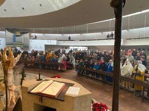 So wurde der Heilige Don Bosco mit Gesang, Trommel und Klatschen geehrt beim jährlichen Don Bosco Festgottesdienst am 29.1.23 in der Stadtpfarre St. Martin/ Salzburg-Liefering.